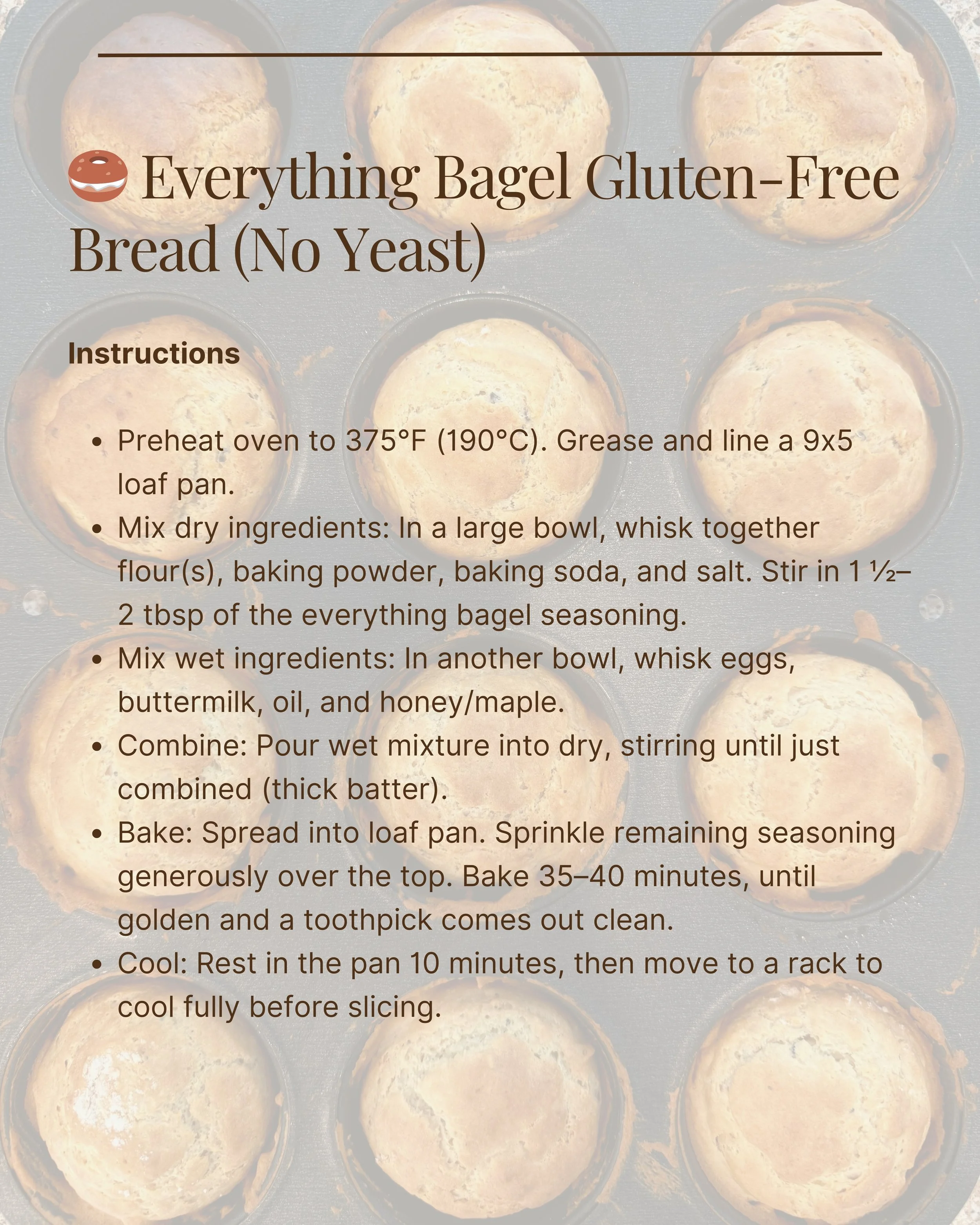 This week I had a hankering for some fresh bread…on a total whim. So with no ‘starter’ or yeast, I whipped up these super simple bread muffins. You could also bake as a loaf, but I am enjoying the smaller portion sizes. This morning, I made an egg and cheese sandwich out of one.